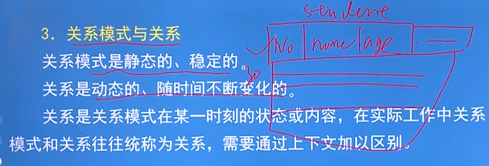 关系模式是对关系的描述 关系模型是模型 关系是值