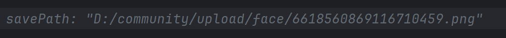 这个方法参数传入了Base64 编码的字符串(faceBase64) + 保存路径(savePath),然后将 Base64 解码成二进制数据,保存为文件到指定路径,也就是我的D:/community/upload/face/6618560869116710459.png