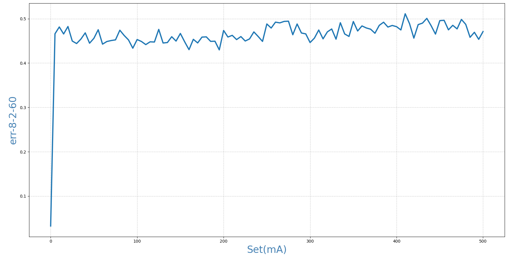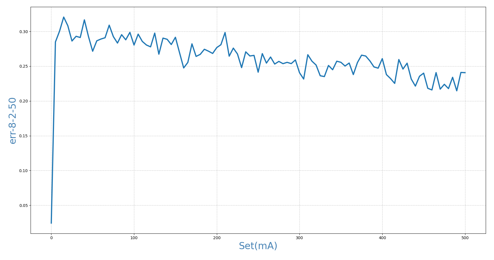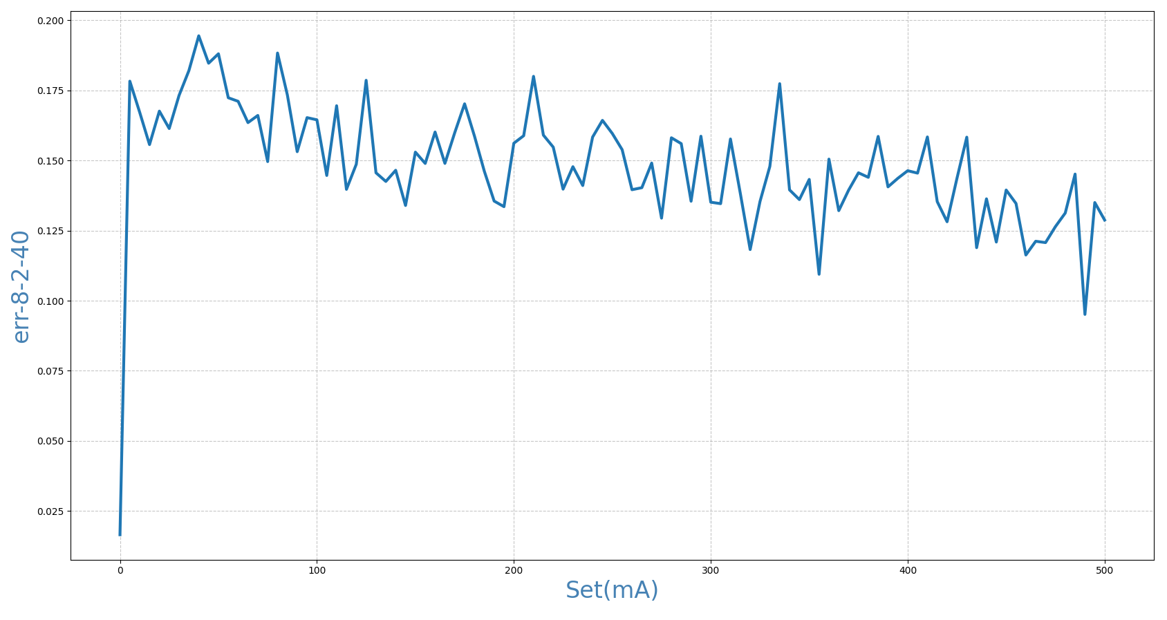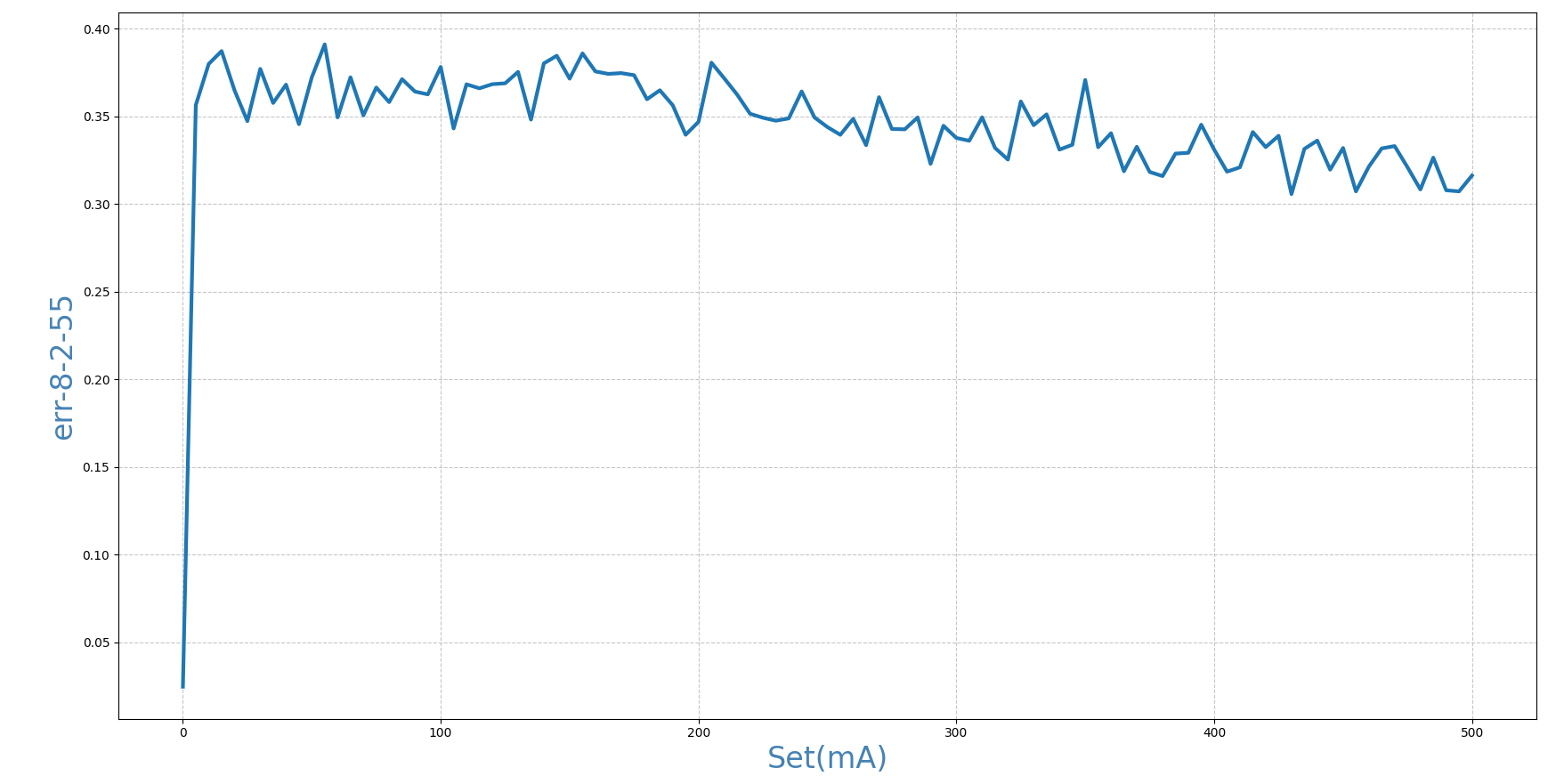 在昨日的测试中,我们对数据进行了初步汇总与分析。基于昨日测试结果,今日我们进一步开展更为细致的评测工作。本次测试将温度增量设定为 5℃,继续采用全量程扫描测试方法。误差定义保持不变,仍为电流输出误差 = 设定值 - DM3068 示值(单位:mA)。
