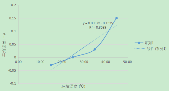 | 环境温度 (℃) | 平均误差 (mA) | 误差波动幅度 (mA) | 全量程误差分布范围 (mA) | ▲mA/▲℃ |