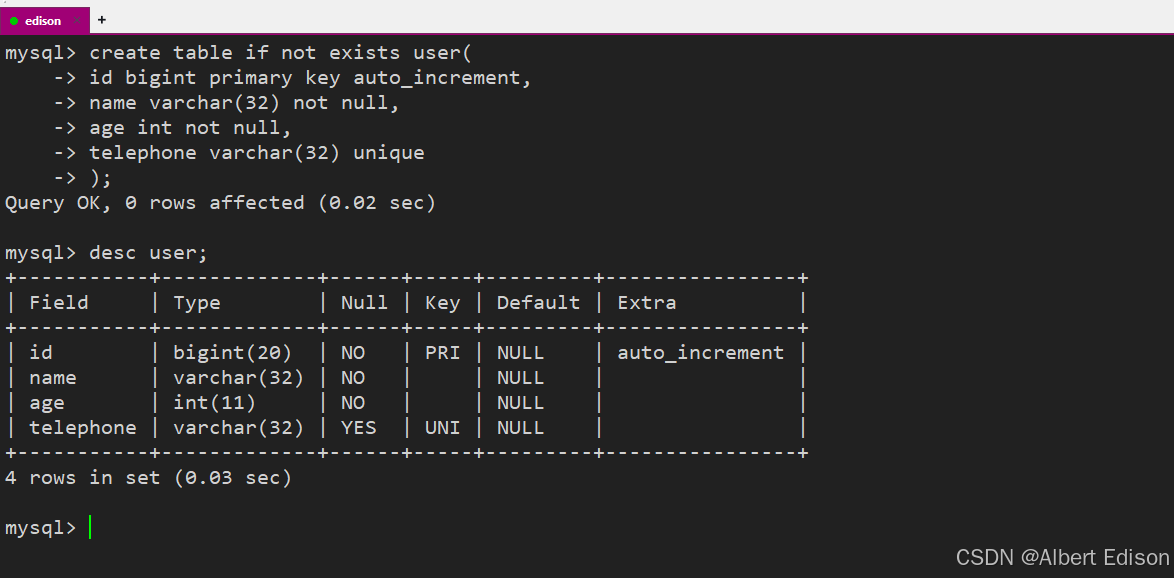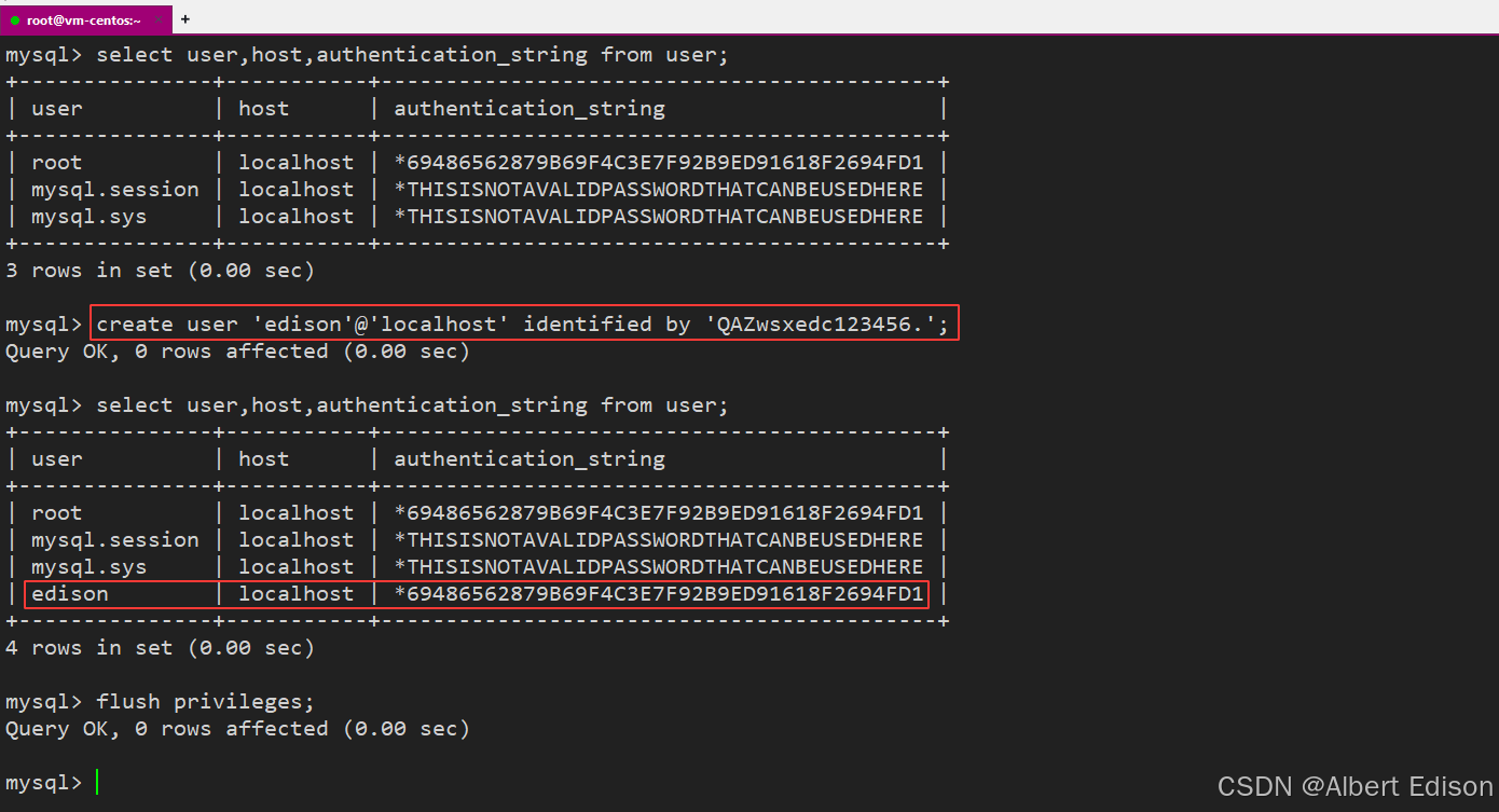 create user 'edison'@'localhost' identified by 'QAZwsxedc123456.';