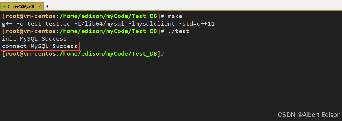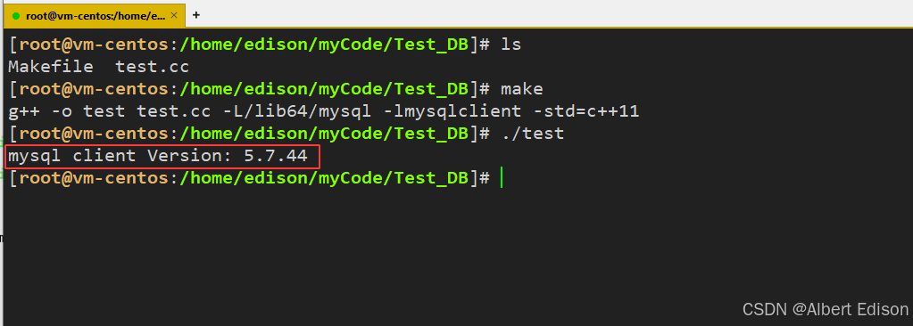 然后运行可执行文件 ./test 即可看到对应的 MySQL 版本: