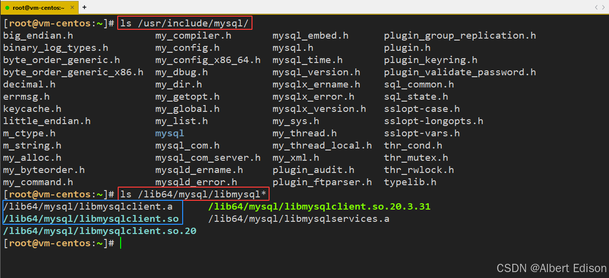 [root@vm-centos:~]# ls /usr/include/mysql/