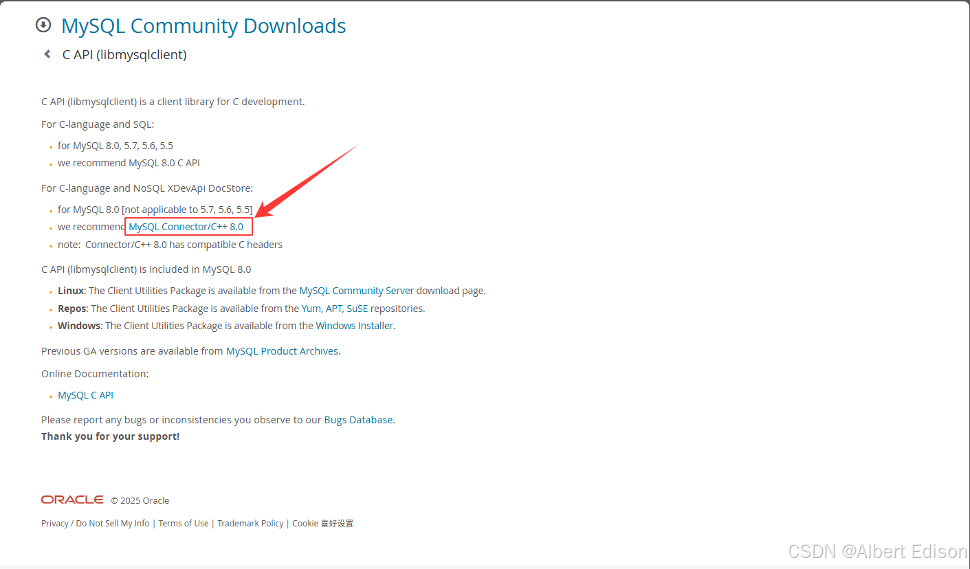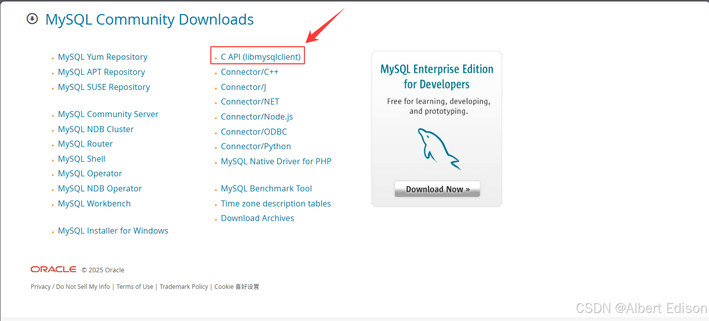 要使用 C/C++ 语言连接 MySQL,需要使用 MySQL 官网提供的库,可以去 官网 下载