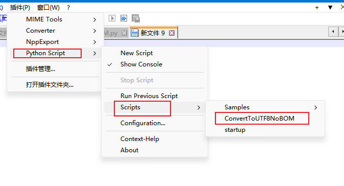 放进去后重启Nodepade++,python的脚本菜单里就会显示这个脚本了。