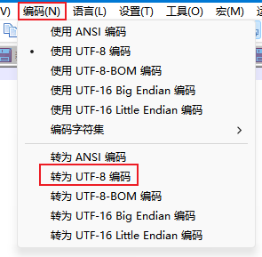 notepad.runMenuCommand("编码(N)", "转为 UTF-8 编码") #菜单名显示的是什么就是写什么