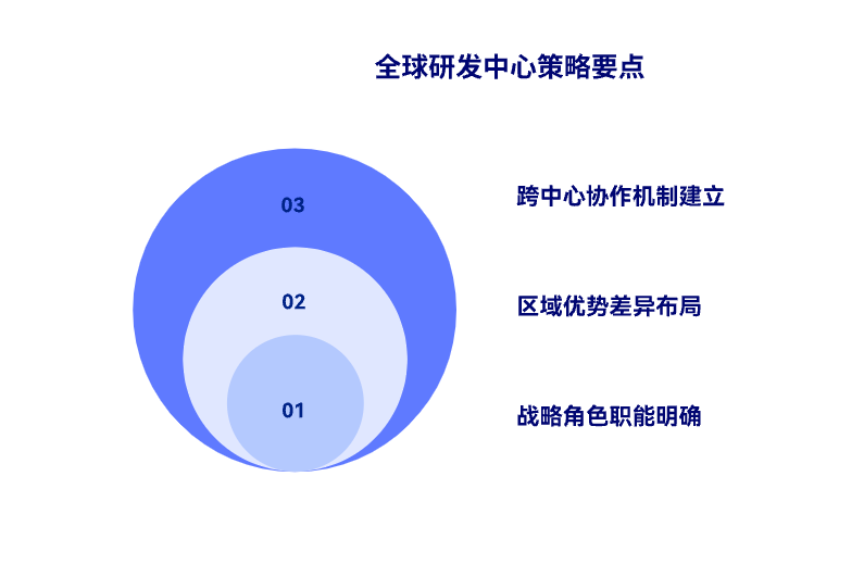 其次,明确定位有助于增强创新协同。全球研发布局的优势在于"时区互补"和"人才多样性",但若缺乏统一定位,各地团队将各自为战,难以形成创新合力。