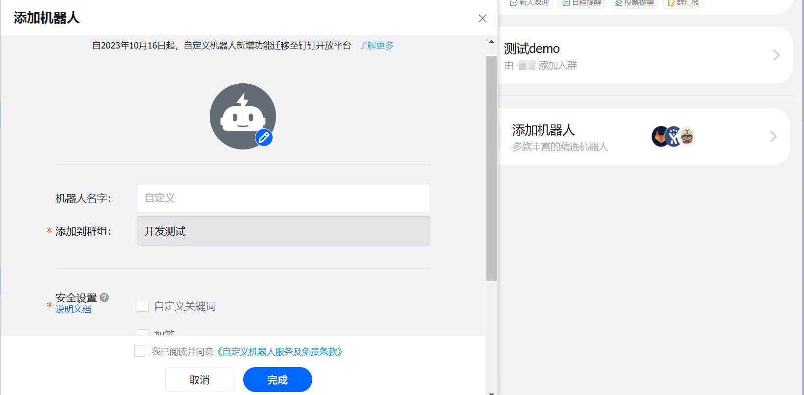 钉钉机器人token获取方式,通过待钉钉通知群设置