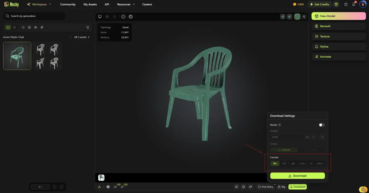 Meshy的AI驱动平台简化了创建、编辑和导出3D模型的过程。在Meshy上生成的模型可以下载为多种格式,确保与您首选的软件或硬件兼容。无论您是业余爱好者还是专业人士,Meshy的工具都能让您轻松实现创意。