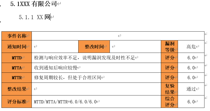 无反馈的是不具备应急响应处置能力的;有反馈并且修复的,根据漏洞通知时间和完成修复反馈时间的天数作为评分指标。