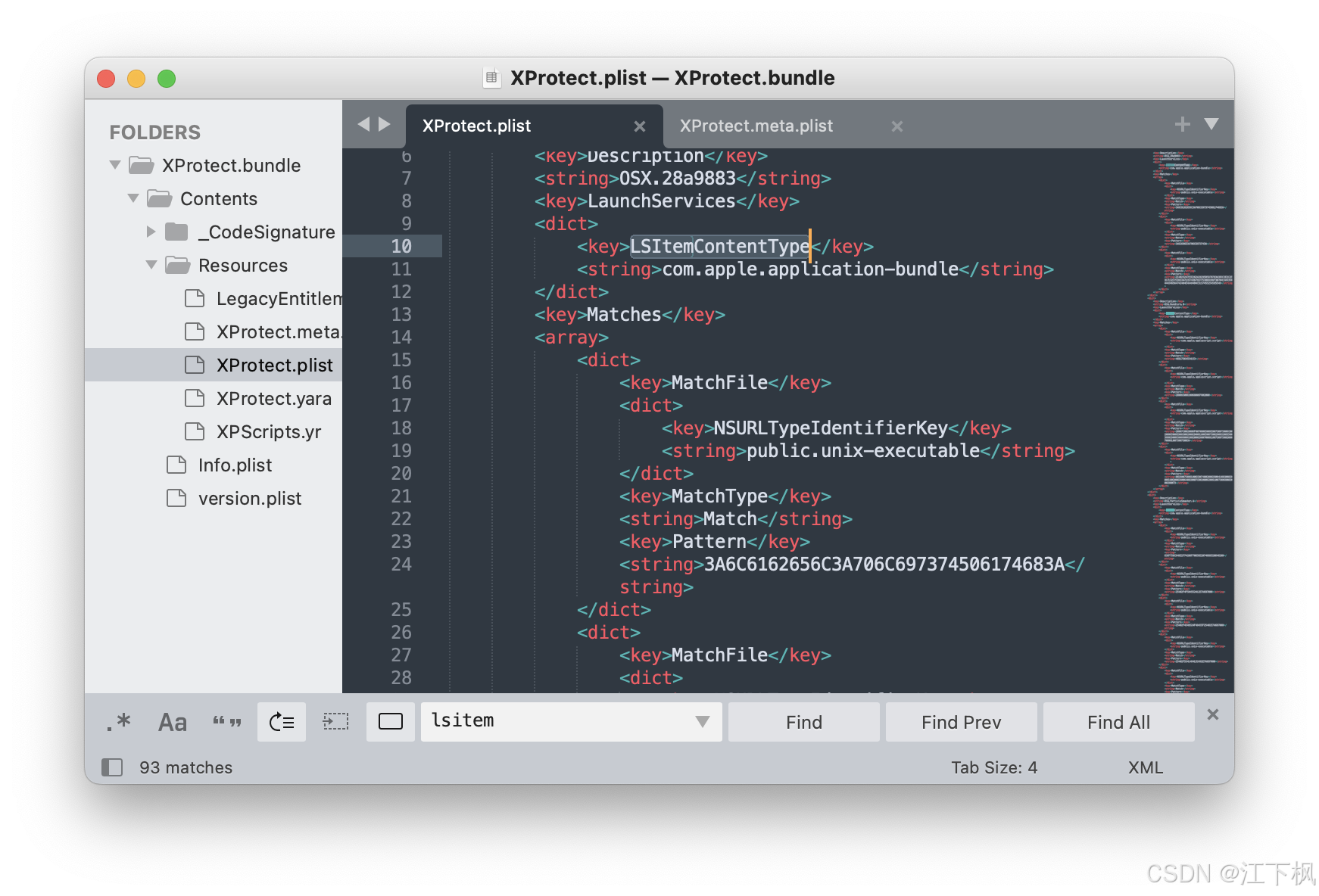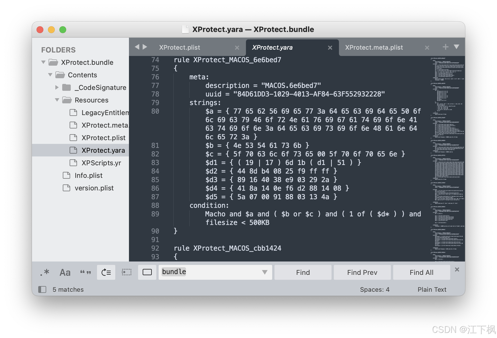 XProtect 恶意软件的定义以 plist 或者 yara 规则形式存储在下面的系统路径中