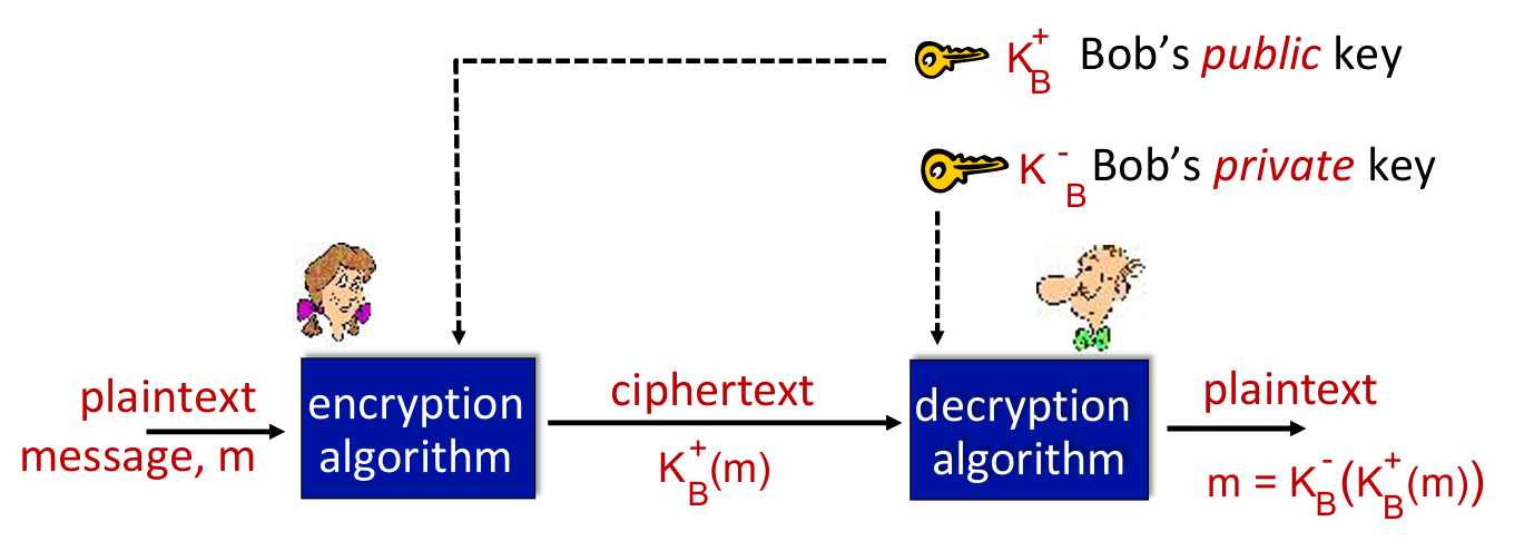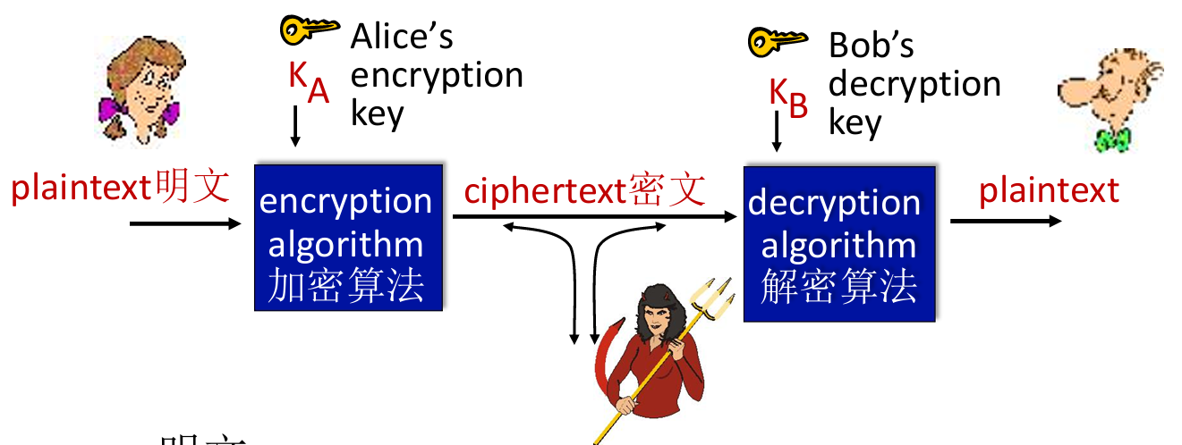 - K A ( m ) K_A(m) KA(m):密文,采用 K A K_A KA进行加密 m = K B ( K A ( m ) ) m=K_B(K_A(m)) m=KB(KA(m)):采用 K B K_B KB进行解密。