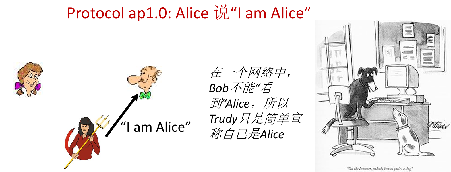 - 协议ap1.0 :Alice声明身份("I am Alice")