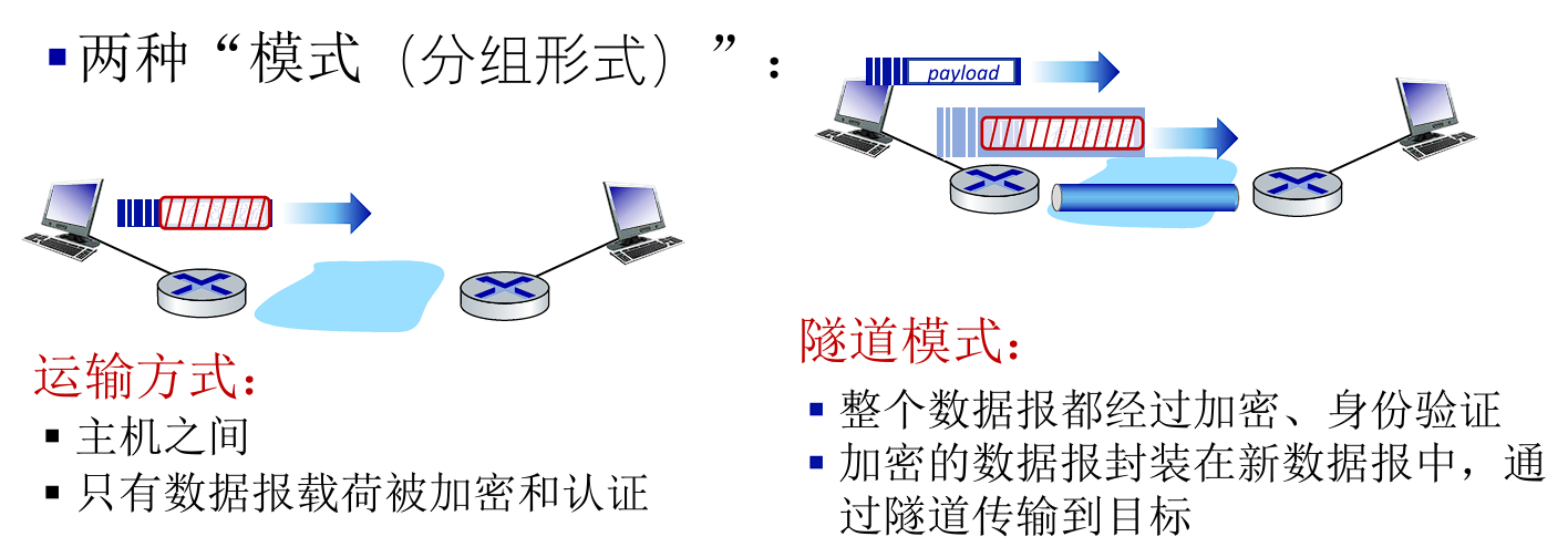 - 传输模式: 只加密数据报载荷,不加密整个数据报。