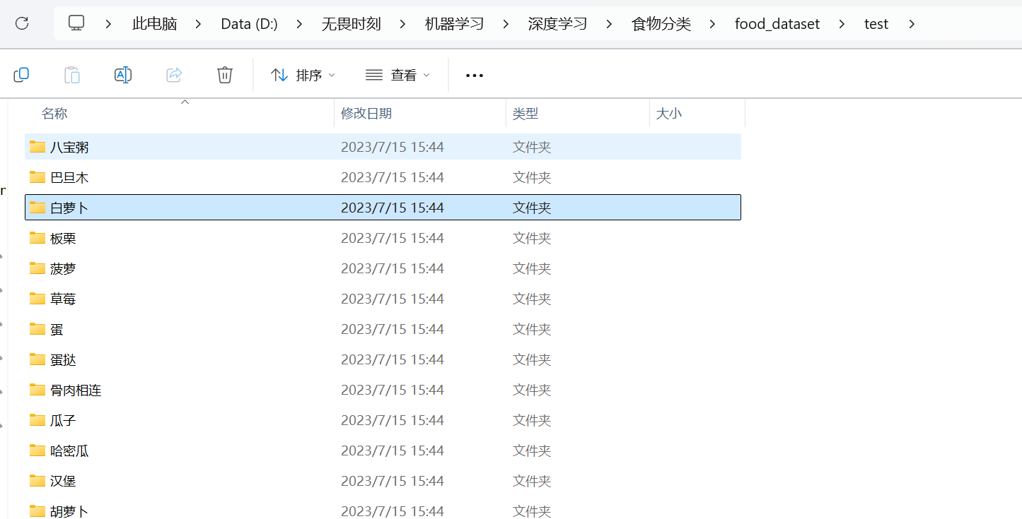 对文件夹中的食物图片使用卷积神经网络训练实现分类。