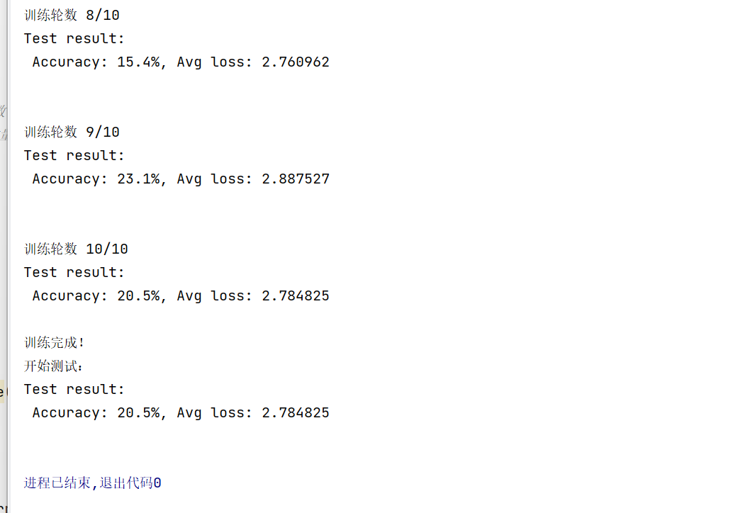 准确率还是很低哈,我们今天主要保证代码能跑通。先跑通代码,再调优。