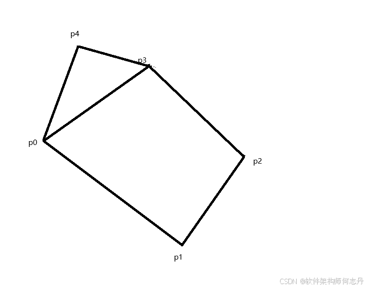 p 4 ≠ p i p4 \neq pi p4=pi,否则和p4的x小于p0,与假设矛盾。故 ∠ p 4 p 0 p 1 < π \angle p4p0p1<\pi ∠p4p0p1<π