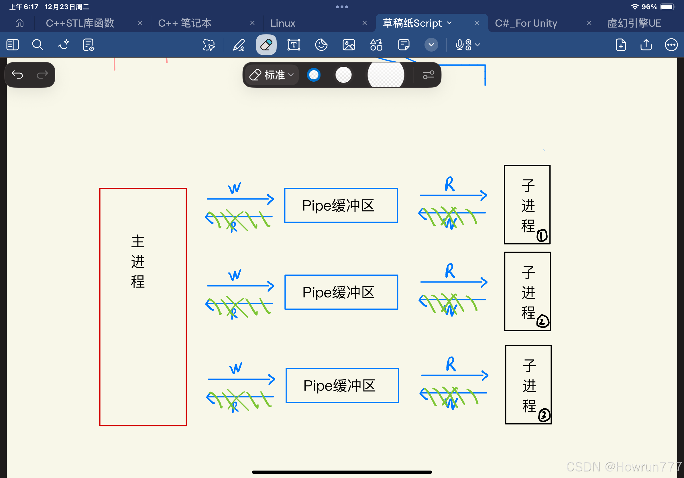 fork()后,父子进程的pipe_fd[0]和pipe_fd[1]都指向同一个内核管道对象;- 父子进程通过关闭不需要的 FD(父关读端、子关写端),形成「父写子读」的单向通信链路;