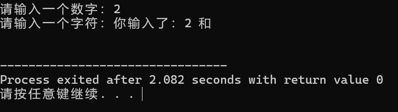 scanf读取了2,但是留下了\n在缓冲区。 -