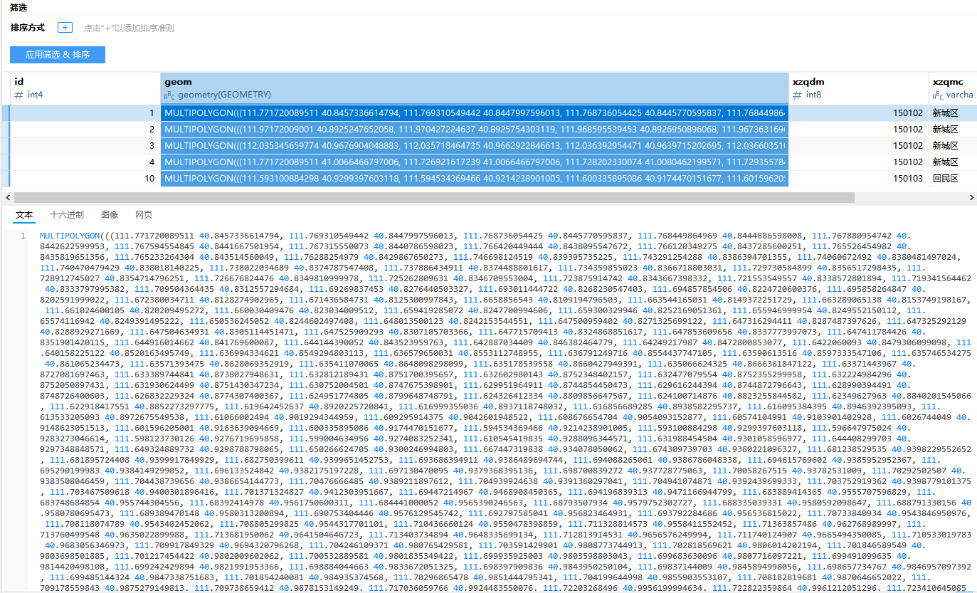 -- 示例:查询天地图视野范围内(minLng, minLat, maxLng, maxLat)的MULTIPOLYGON