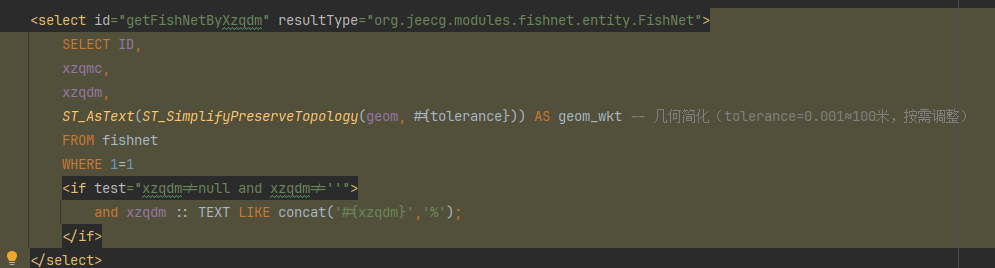 ST_AsText(ST_SimplifyPreserveTopology(geom, :tolerance)) AS geom_wkt, -- 几何简化(tolerance=0.001≈100米,按需调整)