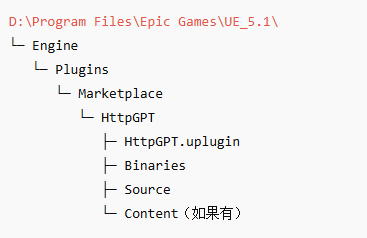 我把HttpGPT 目录拷贝到 D:\Program Files\Epic Games\UE_5.1\Engine\Plugins\Marketplace