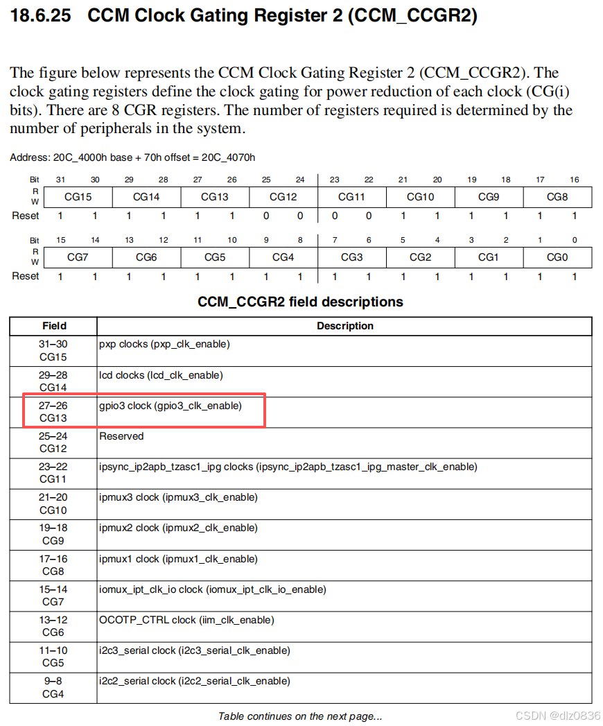 | GPIO3 | CCM_CCGR2 | CG13 | bits[27:26] |