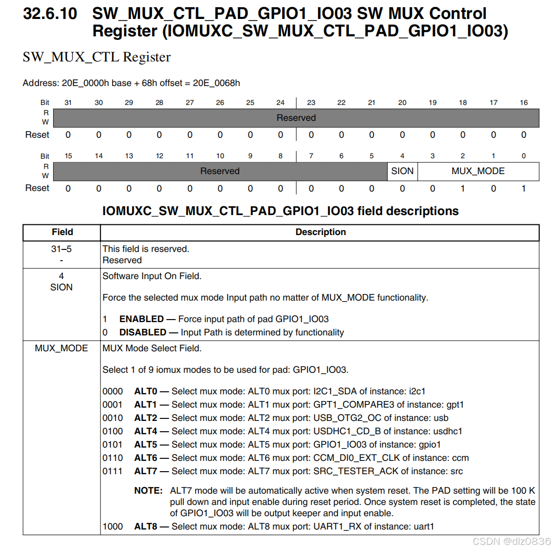 ldr r0, = 0x020E0068 /* 将寄存器IOMUXC_SW_MUX_CTL_PAD_GPIO1_IO03加载到r0中 */