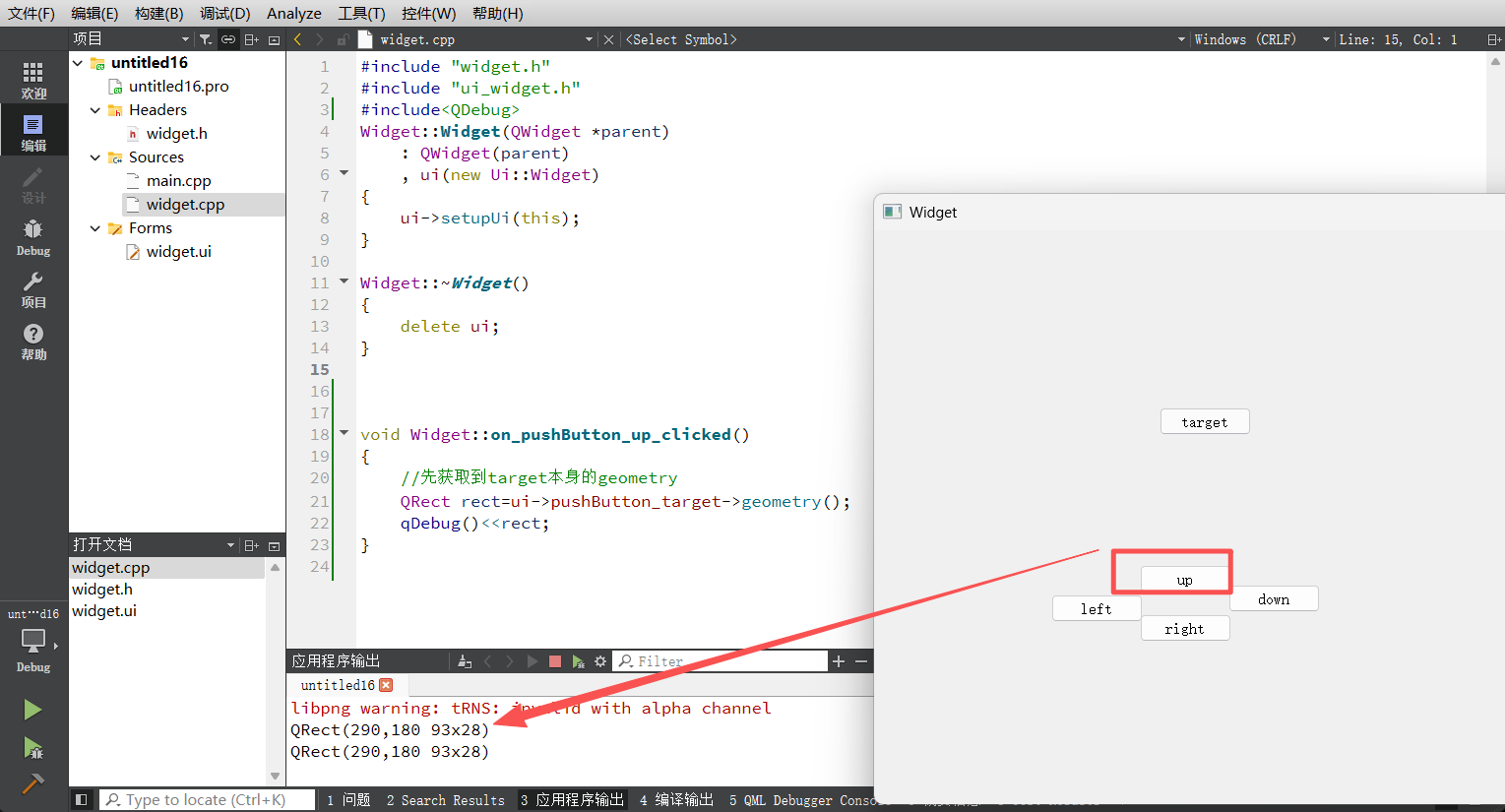 通过 qDebug() 可以观察到 geometry() 返回的 QRect 对象包含了完整的坐标和尺寸数据。