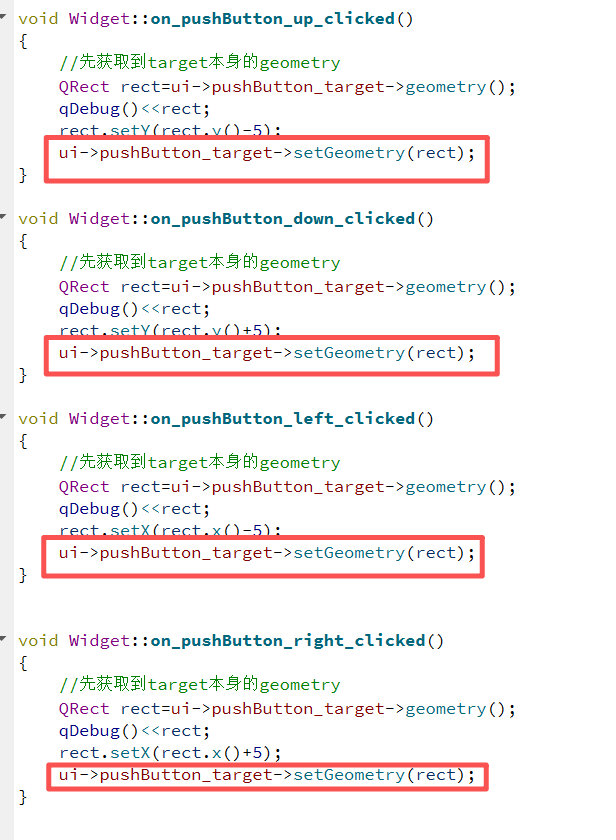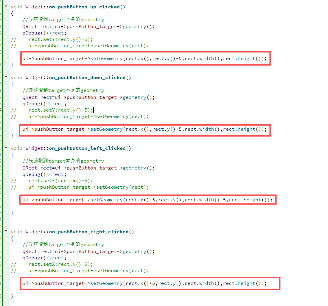 实现平移需要确保控件的宽度和高度保持不变。推荐使用 setGeometry 的四个参数版本,或者在修改 QRect 后调用 setGeometry 重新赋值。