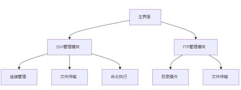 xml<!-- mainwindow.ui --> <widget class="QMainWindow"> <property name="geometry"> <rect> <x>0</x> <y>0</y> <width>800</width> <height>600</height> </rect> </property> <layout class="QHBoxLayout"> <item> <widget class="QTabWidget"> <property name="currentIndex">0</property> <widget class="QWidget"> <layout class="QFormLayout"> <item> <widget class="QLineEdit" name="hostEdit"/> </item> <item> <widget class="QPushButton" name="connectBtn">连接</widget> </item> <!-- SSH文件传输区域 --> <item> <widget class="QTreeWidget" name="fileTree"/> </item> </layout> </widget> <widget class="QWidget"> <layout class="QFormLayout"> <item> <widget class="QLineEdit" name="ftpHostEdit"/> </item> <item> <widget class="QPushButton" name="ftpConnectBtn">连接</widget> </item> <!-- FTP传输进度条 --> <item> <widget class="QProgressBar" name="progressBar"/> </item> </layout> </widget> </widget> </item> </layout> </widget>