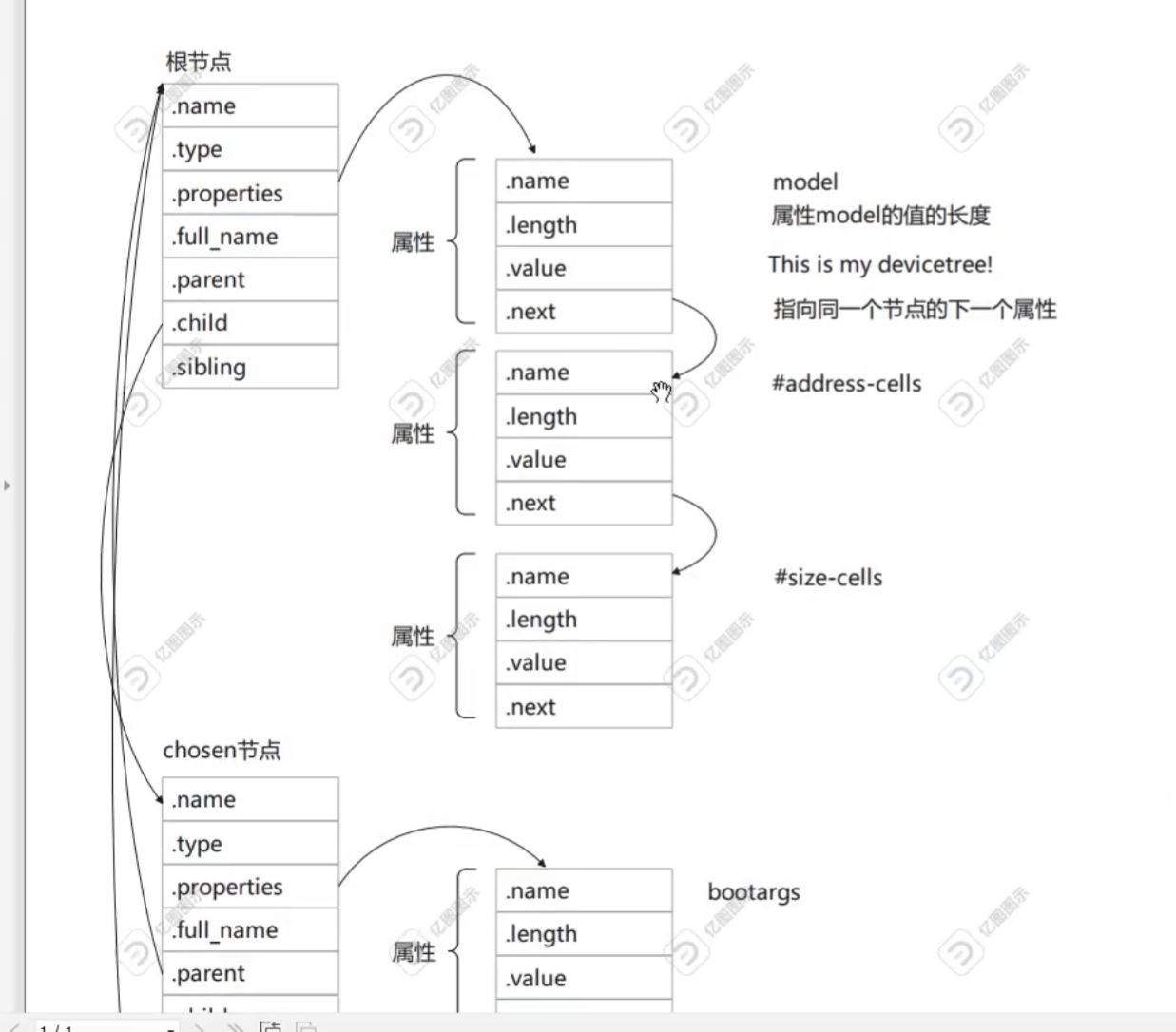 struct property *properties; // 指向该节点的属性链表(如 reg, compatible 等)