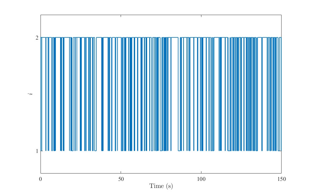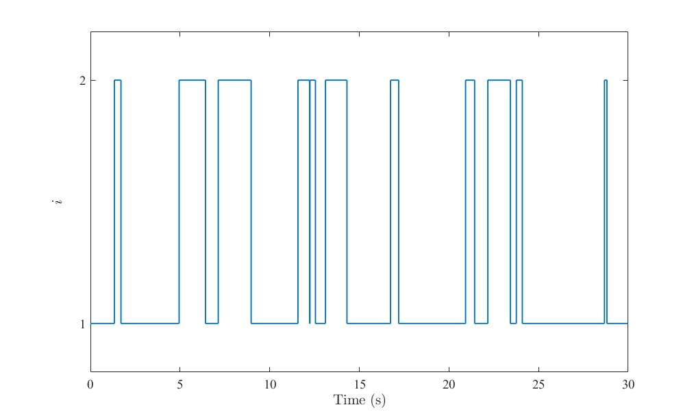 用最简单的参数测试一下。假设该马尔可夫跳变系统仅具有2个模态,各模态参数设置如下: