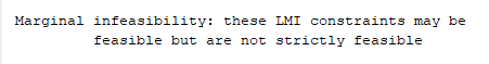 不难发现,这两个系统都是不完全可控的。但是,模态1是不可镇定的,不能够通过LMI求解出控制增益。而模态2是可镇定的,可以得到