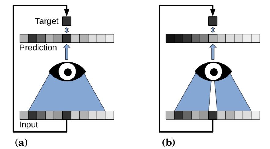 但如果仍然像传统的监督学习一样,直接把输入和target都换成同一个带噪声的图,那么就会学到恒等映射。为了避免恒等映射,故意把感受野的中心点去除,这就是盲点(blind-spot)网络:
