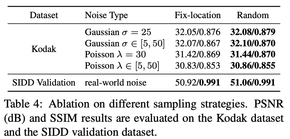 具体实现上,首先是切成64x64大小的patch,再使用stratified sampling采样得到N个点,同时使用mask记录这些点的位置。对这些点再随机使用它们的邻域的点替换,拟合目标就是依据于mask只拟合替换前的值。