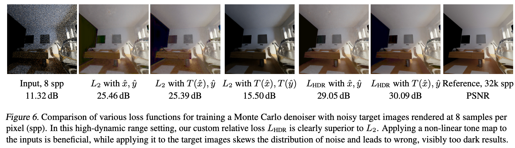 在Monte Carlo Rendering,噪声更加复杂。因为长尾分布,L2不可用,因为HDR的存在,让去噪网络输出Tone mapping之后的结果也有的问题,所以先是引入了类似于relative MSE的