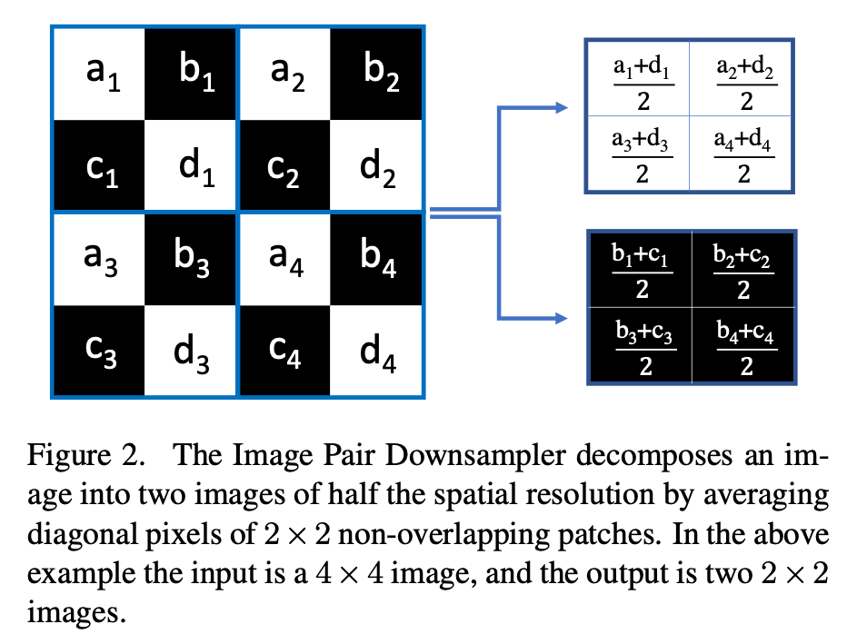 Zero-Shot Noise2Noise,来自CVPR2023,慕尼黑工业大学TUM。基于N2N和Nbr2Nbr,更换了采样策略:通过计算对角线像素的均值构建input-target