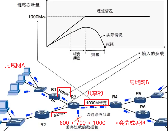 网路层没有重传机制 ,一定会丢包。整个过程是类似交通堵塞的。
