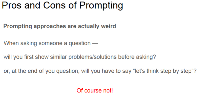 但是这整个事情还是比较奇怪,一个聪明人需要你专门告诉他一步步思考吗?不告诉他这么思考他就不会思考了是吗?