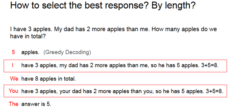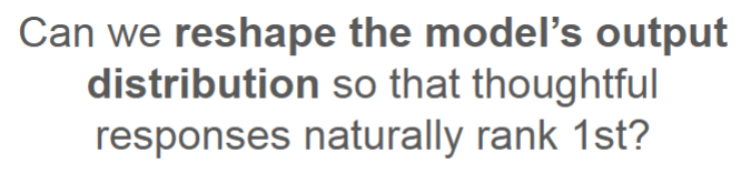 一个自然的想法是,如何让大语言模型直接把带思考过程的、优秀的答案在内部排个序,最优先输出?