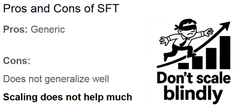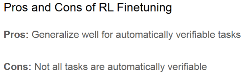 RL微调(SFT)的优缺点很明显:对于可以自动判断正误的问题,泛化性很好。