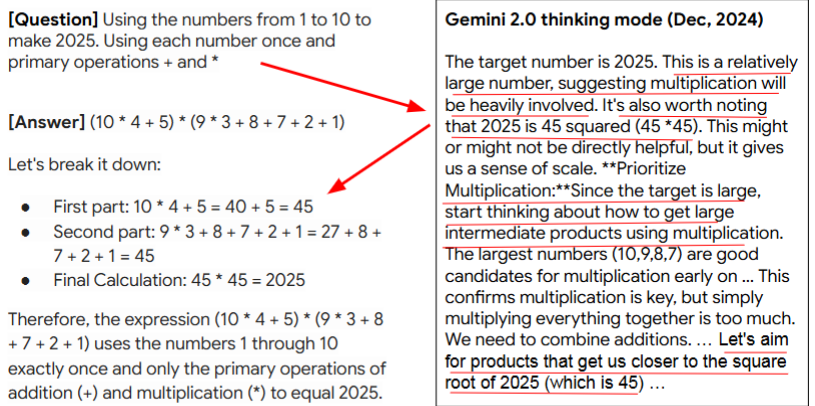 显然,左侧就是答案,右侧在输出答案之前进行了一些推理过程。