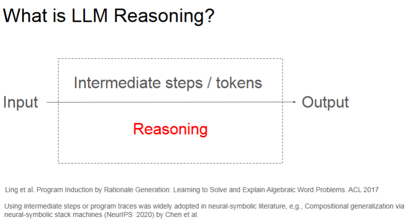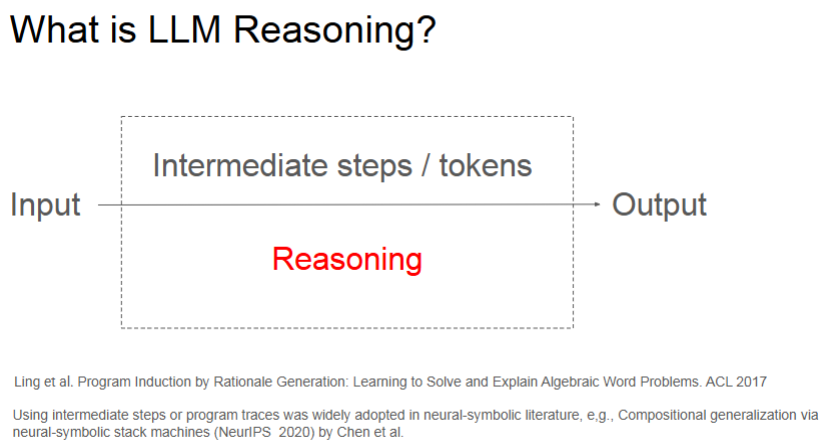 从人类给出的问题到最终答案之间的所有中间输出步骤都叫做大语言模型的推理。