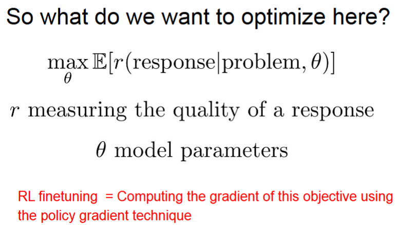 相当于我们直接优化这个东西:给定问题和模型,最大化回答的质量。如下图。