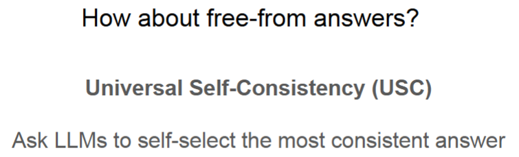 提出通用的自洽性:在这种非唯一性下,让模型自己判断什么回答算是一致的。