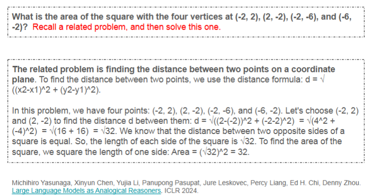 一个类比推理的例子。在大模型求解问题之前,先让它想想可能相关的问题。------先在自己的记忆库中检索。