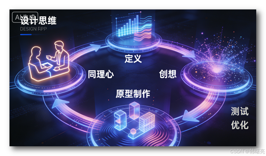 - 迭代优化 : 根据 用户 反馈 重新制作原型 或者 重新回到 同理心 阶段 挖掘需求 或者 回到 定义 阶段调整核心问题 ;