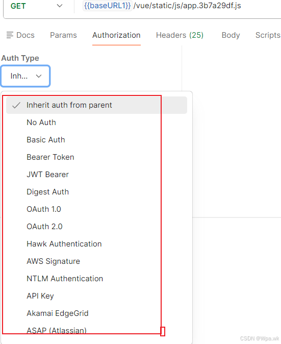 postman中添加鉴权的位置如下: