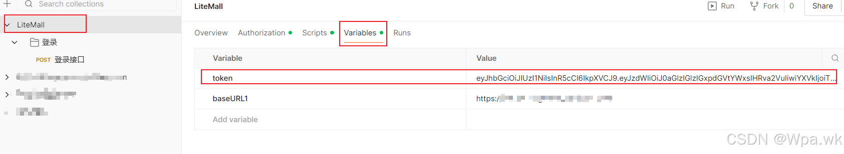 运行后会在测试集中:查看到token测试集变量